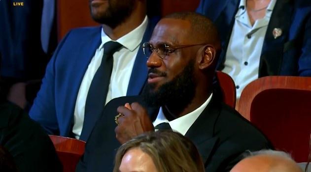 霍华德名人堂演讲期间导播切出詹姆斯特写镜头:勒布朗在这里啊